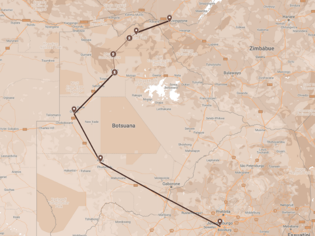 - Rota: Joanesburgo a Palapye